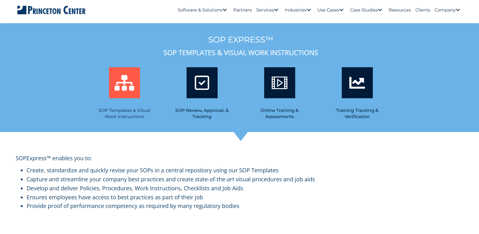 其主要功能包括预审批模板、供多个用户协作编辑同一SOP的协作工具、跟踪更改的版本控制等。