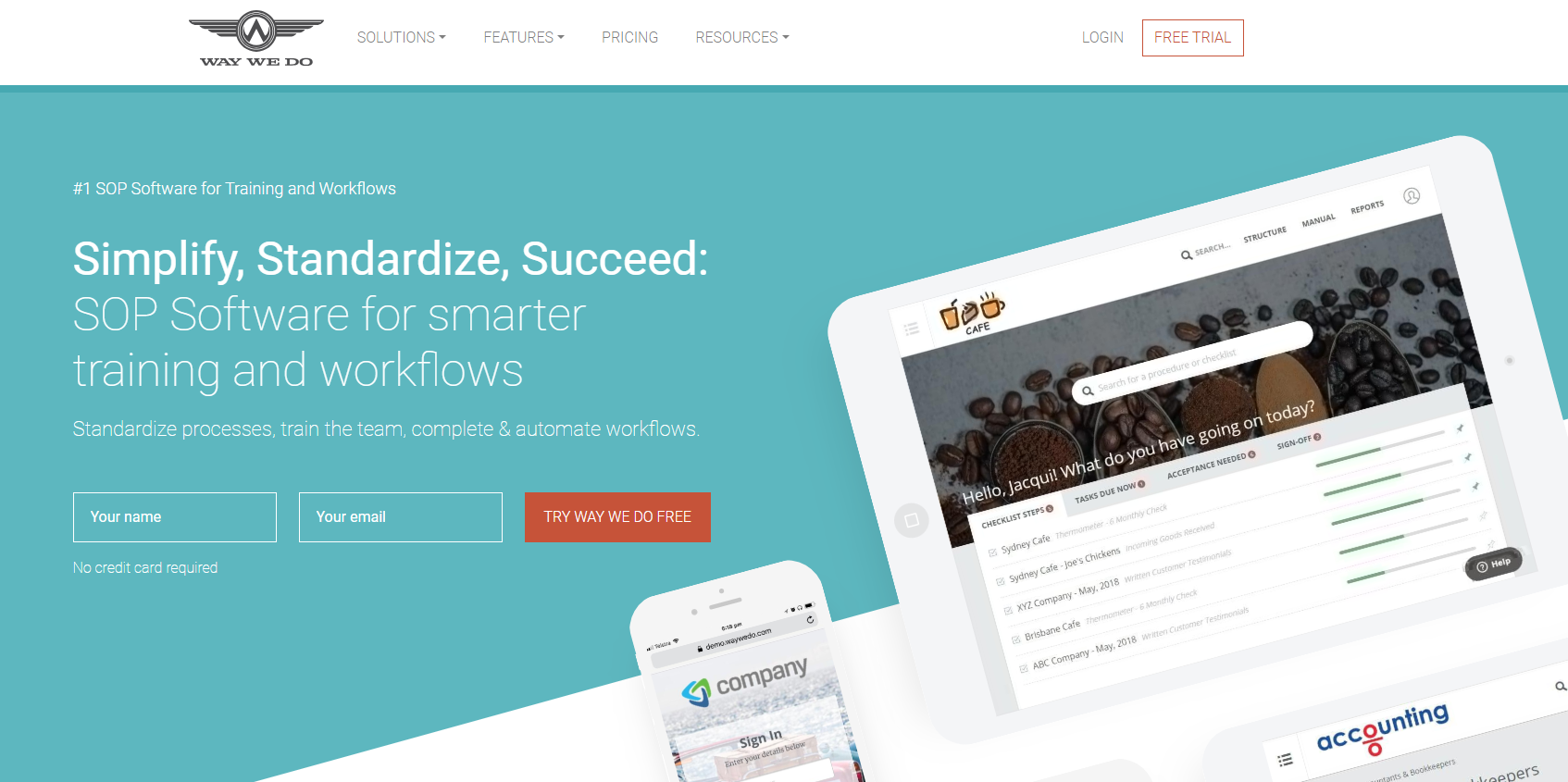 Way We Do帮助你将规则和步骤转化为易于遵循的计划,确保运营顺畅。它提供交互式清单和模板,用于创建SOP文档,并帮助员工正确执行日常任务。