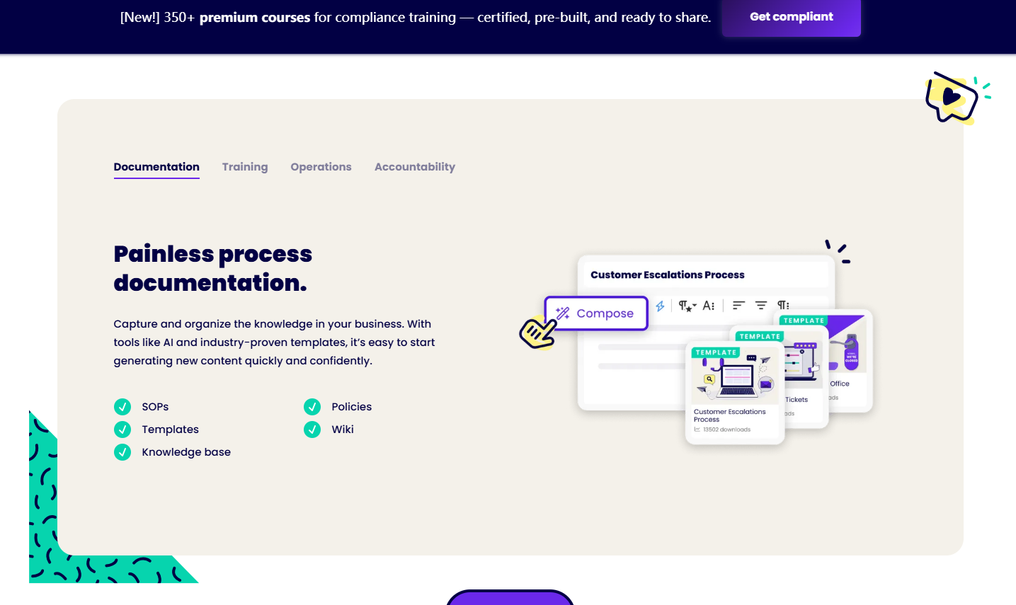 - 提高合规性:确保团队遵守特定的业务规则和法规至关重要。SOP软件可以帮助你创建经过深思熟虑的SOP,使业务始终保持在正确轨道上。当流程被明确记录时,员工更有可能遵守这些流程,并在出现问题时承担责任。