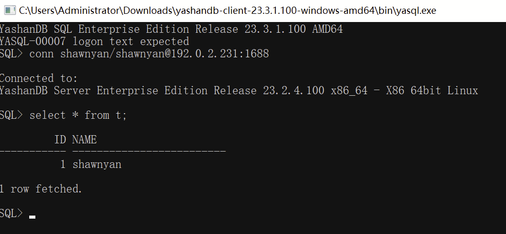 这里演示如何在 Windows 上连接到 YashanDB。