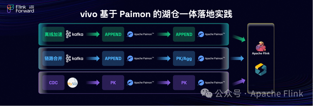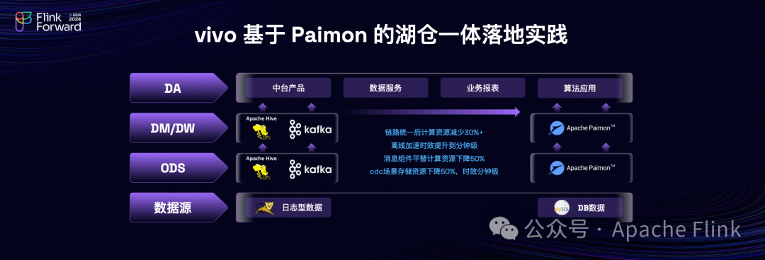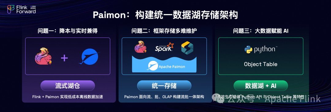 第二点是统一存储,各位老师都提到了流批一体,Paimon 是真正流批一体存储,流批链路完全的统一,整体的开发效率得到非常大的提升。