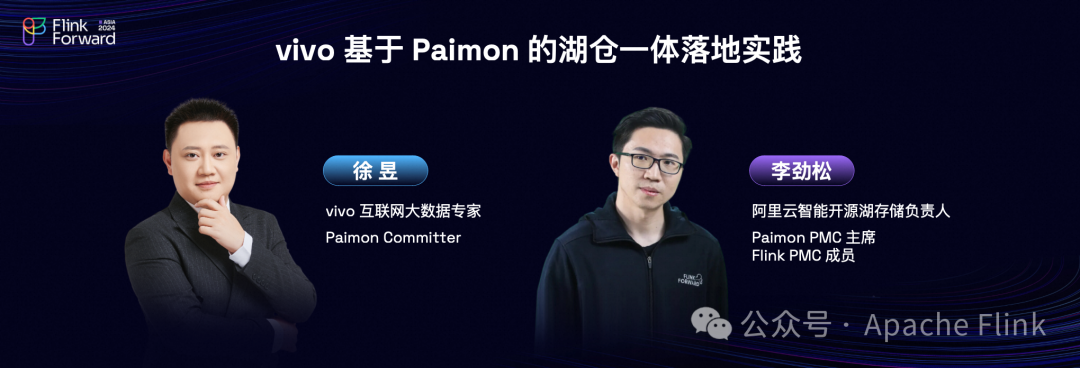今天非常荣幸有这么好的机会来跟大家进行行业交流,我叫徐昱,是vivo互联网的一名大数据专家,同时也是 Apache Paimon 项目的 Committer。主要负责湖仓一体数据平台的建设与完善,我们当前建设的湖仓系统每天接入数据量达到万亿级、支持 PB 级体量数据高效入湖,可以为我们各种数据业务,包括 AI、数据集成各种业务进行正向的赋能,可以很好地完成企业交付给我们平台地增效降本相关诉求。