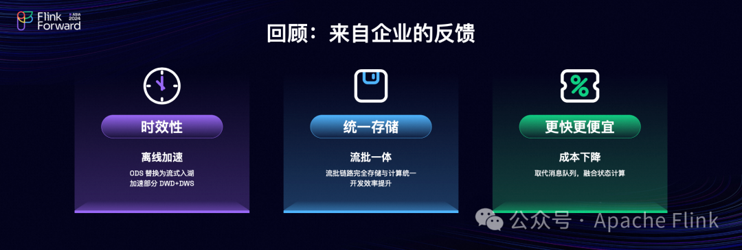 这是我从前面嘉宾们分享得到三个最大的信息。本次的分享交流会就到这里,更多精彩请关注 Apache Flink公众号 为大家带来更多有关流式湖仓的分享!