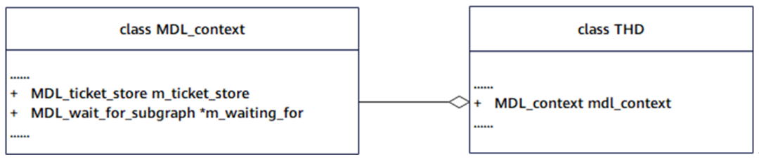 如图2所示,THD通过MDL_context来申请和释放MDL,对于持有的每个MDL会有一个对应的MDL_ticket,存放在m_ticket_store中。另外,MDL_context还包含了一个m_waiting_for成员,用于记录当前会话正在等待的MDL_ticket信息。