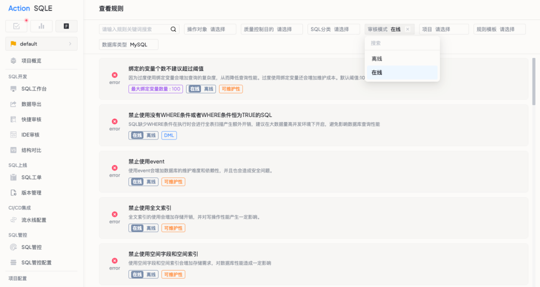 面对 700+ SQL 审核规则,组合适配规则往往要花费大量时间。