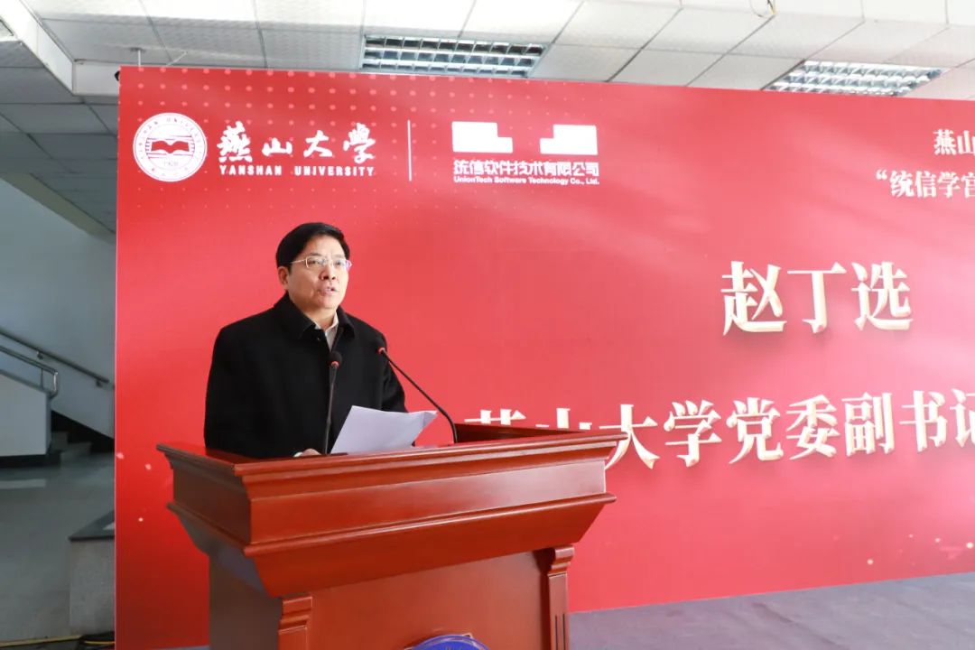 燕山大学校长赵丁选在致辞中强调,燕山大学信息技术应用创新运营中心暨“统信学宫”适配迁移验证实践中心的启动运行,是我校信创事业发展道路上的一个重要里程碑。自2023年与统信软件合作以来,双方在适配验证、生态建设及场景应用等方面取得了显著成效,并探索出了工科高校信创应用生态落地的可复制模式。新成立的创新运营中心和适配迁移验证实践中心将致力于推进信创全生态应用适配迁移验证和人才培养工作,为全国教育行业的信创生态建设贡献力量。赵丁选表示,燕山大学将继续深化与统信软件的合作,努力打造信创应用生态和人才培养的典范,助力“网络强国、数字中国”建设。