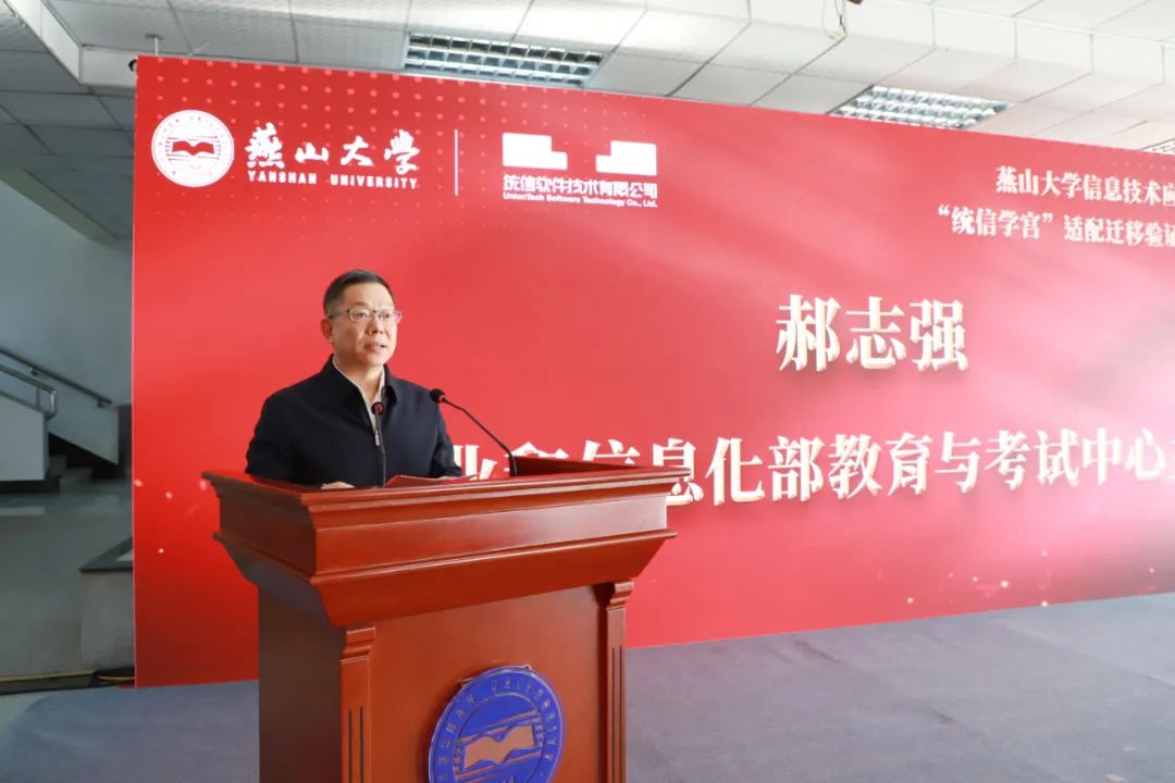 工业和信息化部教育与考试中心主任郝志强指出,2024年8月,教考中心联合统信软件开展了“统信学宫”专项人才培养行动计划,围绕联合制定人才培养方案、联合建设教学资源库、联合建设实验实训室、联合开展项目实践、联合举办技术技能大赛五大方面开展人才培养实践中心和适配迁移验证实践中心的建设工作。在京津冀协同发展时代背景下,燕山大学此次入选“统信学宫”实践中心建设,既是教考中心、燕山大学、统信软件三方共同服务国家战略的使命担当,也是共同打造信息技术应用创新领域产教融合、校企合作新模式的实践探索。希望三方以此为契机,加强产学研协同,积极发挥实践中心纽带作用;以项目实践为中心,切实推动实践中心内涵建设;汇聚创新力量,主动发挥实践中心平台作用。创新人才培养模式,打造产教融合新路径的示范标杆,培养出更多具有创新精神和实践能力的高素质信息技术应用创新人才,为推动我国信息技术产业的高质量发展贡献力量。