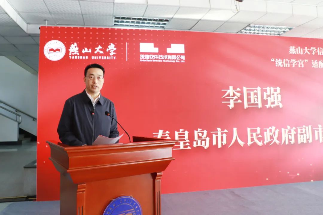 秦皇岛市副市长李国强在致辞中对此次揭牌表示热烈祝贺。他指出,燕山大学与统信软件的合作是深化产教融合、推动高校科技成果转化、探索教育行业信创应用生态建设的重要举措。李国强强调,信息技术应用创新产业是保障国家信息安全、推动产业升级转型、培育创新发展生态的关键,而高校在信创领域的探索与实践具有举足轻重的作用。此次燕山大学与统信软件的合作将有力促进高校与企业、科研机构之间的协同合作,构建完善的信创生态体系,为国家信创产业发展注入新活力。同时,希望未来双方基于运营中心能够为秦皇岛市的信息产业发展输出更多科技成果,培育更多科技人才。