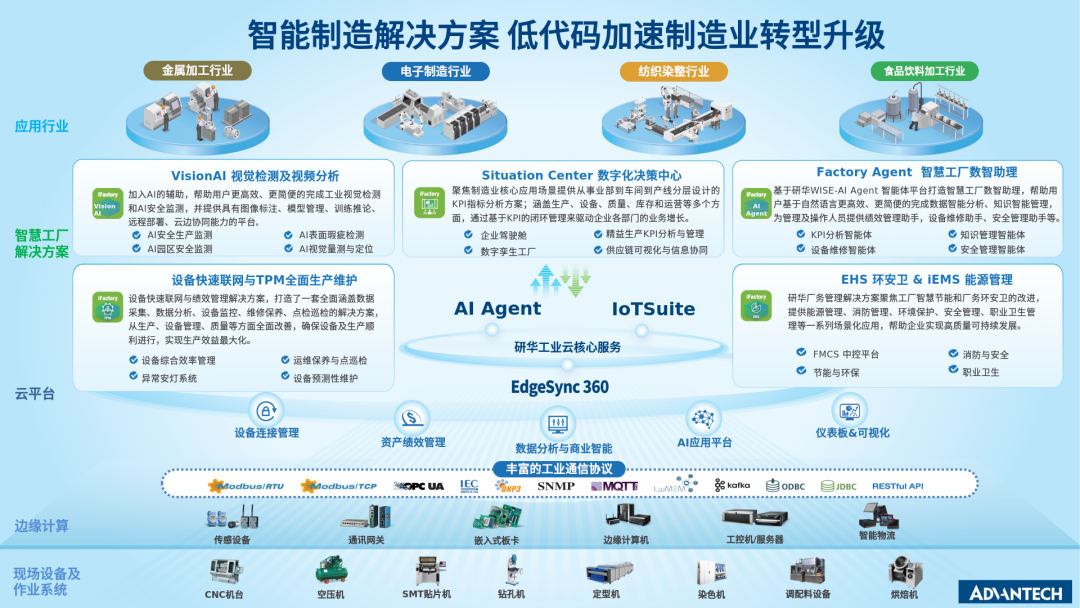 基于当前市场需求,研华与统信UOS强强联合,深度融合物联网、大数据、云计算及AI技术,构建了一个从生产到管理的全方位优化闭环,全面覆盖生产监控、工艺管理、异常分析、巡检运维等关键环节,进一步强化了企业的系统化管理能力,加速向绿色制造与高质量发展的转型步伐。