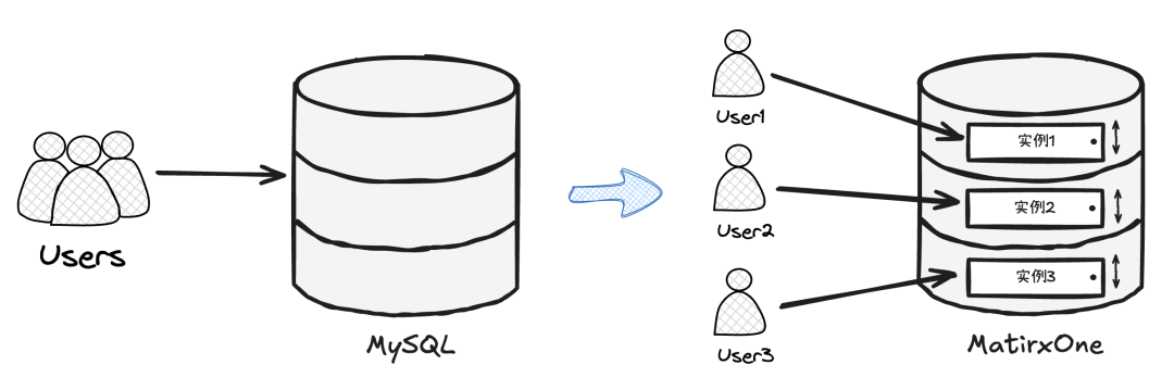 MatrixOne Cloud 的 Serverless 实例可以自动识别业务压力并自动调整计算资源,且采用按 SQL 收费的计费方式,利用这一特性,盎锐将一个数据库实例按其客户拆分成多个 Serverless 实例,单表容量得到了几个数量级的降低,有效地提升了读写性能。
