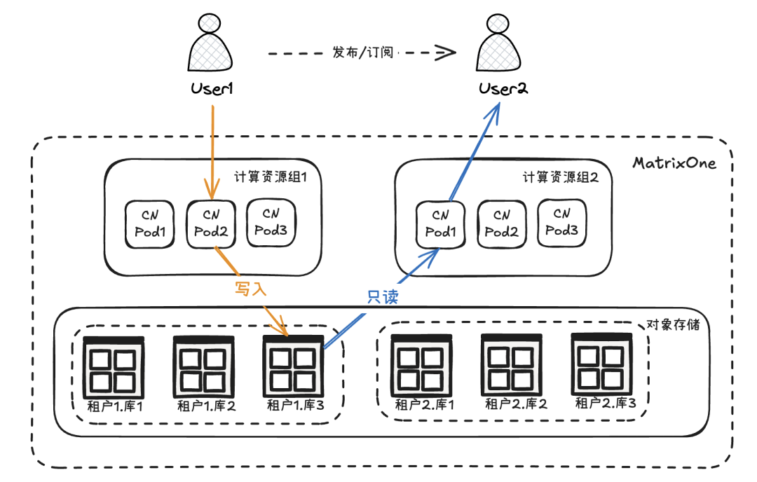 由于 MatrixOne 是多租户技术架构,这使得数据在租户之间可以方便的分享,MatrixOne Cloud 提供了界面化的数据发布订阅功能,数据库或数据表可以由租户管理员快速(秒级)地分享给另一个租户,数据分享期间数据不会被复制(同一地区),订阅方也无需为数据存储付费,由此盎锐将数据上传业务与报表分析业务分离,使用两个实例既解决了不同业务的性能干扰,又天然实现了分析业务代码不要误修改数据的目的。
