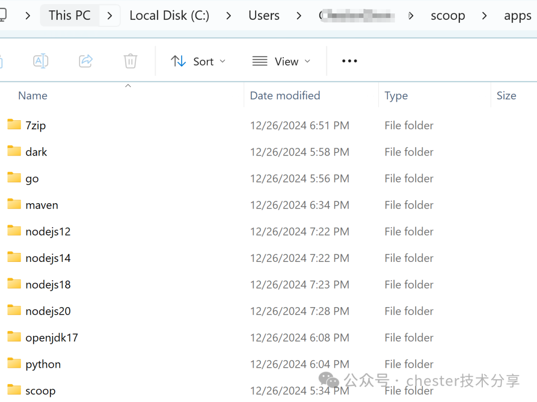 Scoop 通常将应用安装在 ~/scoop/apps/
