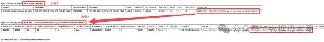 (2)执行detail cmd的输出,找出该BE 所在的副本(compact status url中包含有该BE的ip)