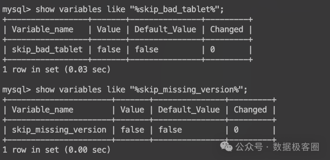 通过设置变量skip_missing_version 和 skip_bad_tablet 为true就行了,默认是false。