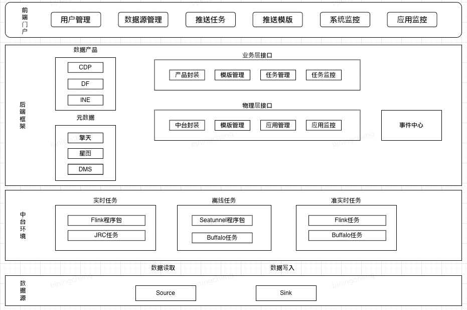 集成业务系统接口,封装中台和数据系统接口为Service,离线数据推送打通建模工具,优先针对建模表进行推送、人群有更新时主动通知推送服务、约定Hudi表更新通知等