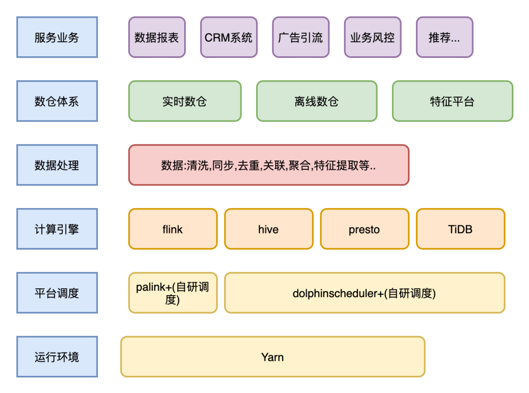 基于平台提供了稳定的环境 (统一调度方式,统一管理,统一监控等)。我们构建了一些实时服务,通过服务化的方式去支持各个业务方。