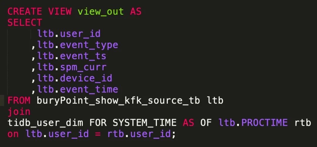 我们在离线数仓中通常存放的是跨业务域的粗粒度数。在伴鱼的实时数仓内部,我们也同样是这样存储的。只不过跨业务域的数据之间的关联,我们不在 Flink 实时处理引擎中做计算。而是把它们放到 TiDB 或者 ClickHouse 中做计算了。在 Flink 内存,我们只计算当前业务域的聚合指标,以及会对数据进行 tag 标记,标记出数据是按哪些维度聚合而来,聚合粒度是如何的。(例如时间粒度上,我们通常会以 5min 或者 10min 为小单位对数据进行聚合),如果要查询当天跨业务的联合数据时,会基于 TiDB 或者 ClickHouse 预先定义好视图,在视图内先对当天单个业务域主题内数据先做聚合 sum ,再将不同业务域的数,按提前在数据中标记的维度 tag 进行关联,得到跨业务的聚合指标。