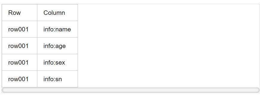 这里举个例子,比如上表中的数据,其实我们只需要取出Rowkey(row001)。但是,实际业务数据中,HBase表描述一条数据可能有很多特征属性(例如姓名、性别、年龄、身份证等等),可能有些业务数据一个列簇下有十几个特征,但是他们却只有一个Rowkey,我们也只需要这一个Rowkey。那么,我们使用FirstKeyOnlyFilter来实现就很合适了。