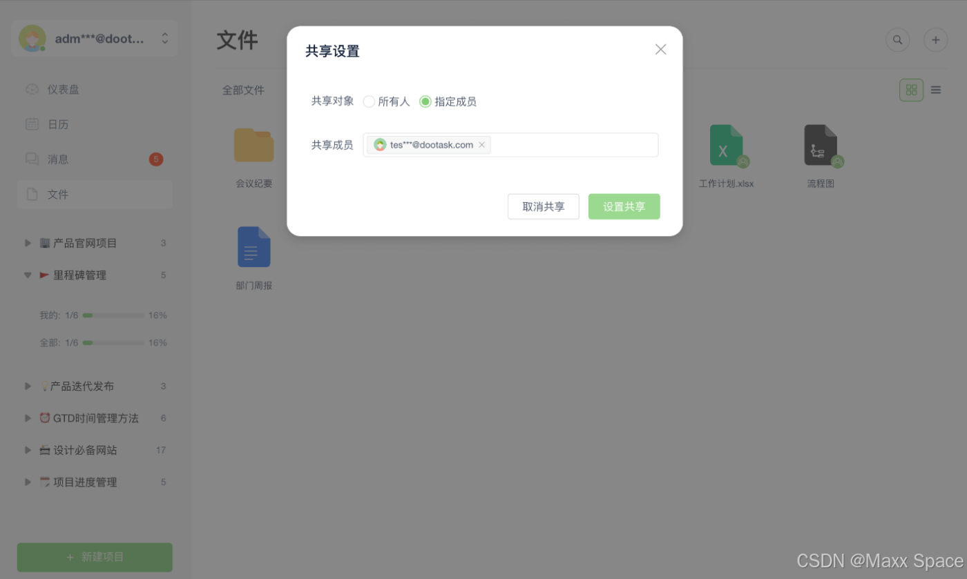 选择对应的文件夹/文件后点击右上角图标,点击【共享】即可将文件夹/文件共享给相关项目成员。勾选页面右上角【仅显示我的】图标,即可分类查看个人关联文件。