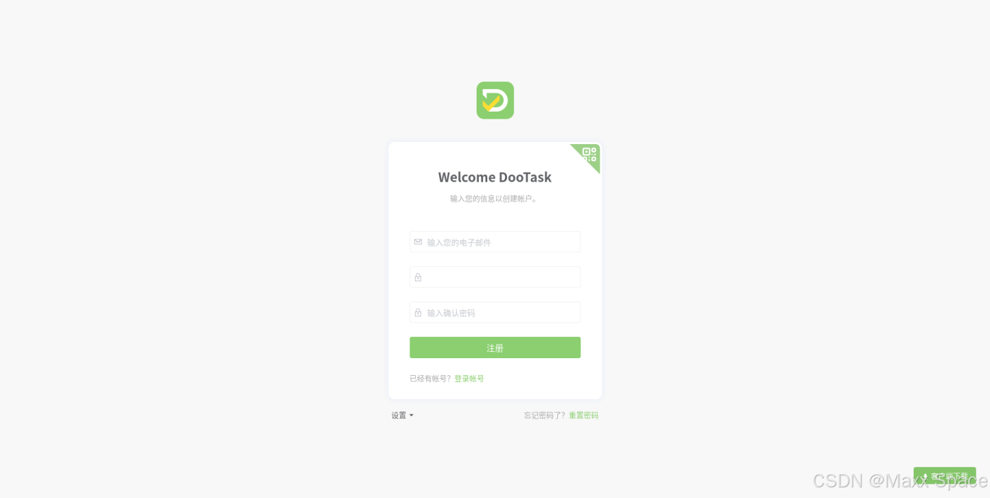 在注册页面对应的输入框,分别输入电子邮箱/密码/邀请码,创建 DooTask 账户,点击【注册】即可完成账号注册