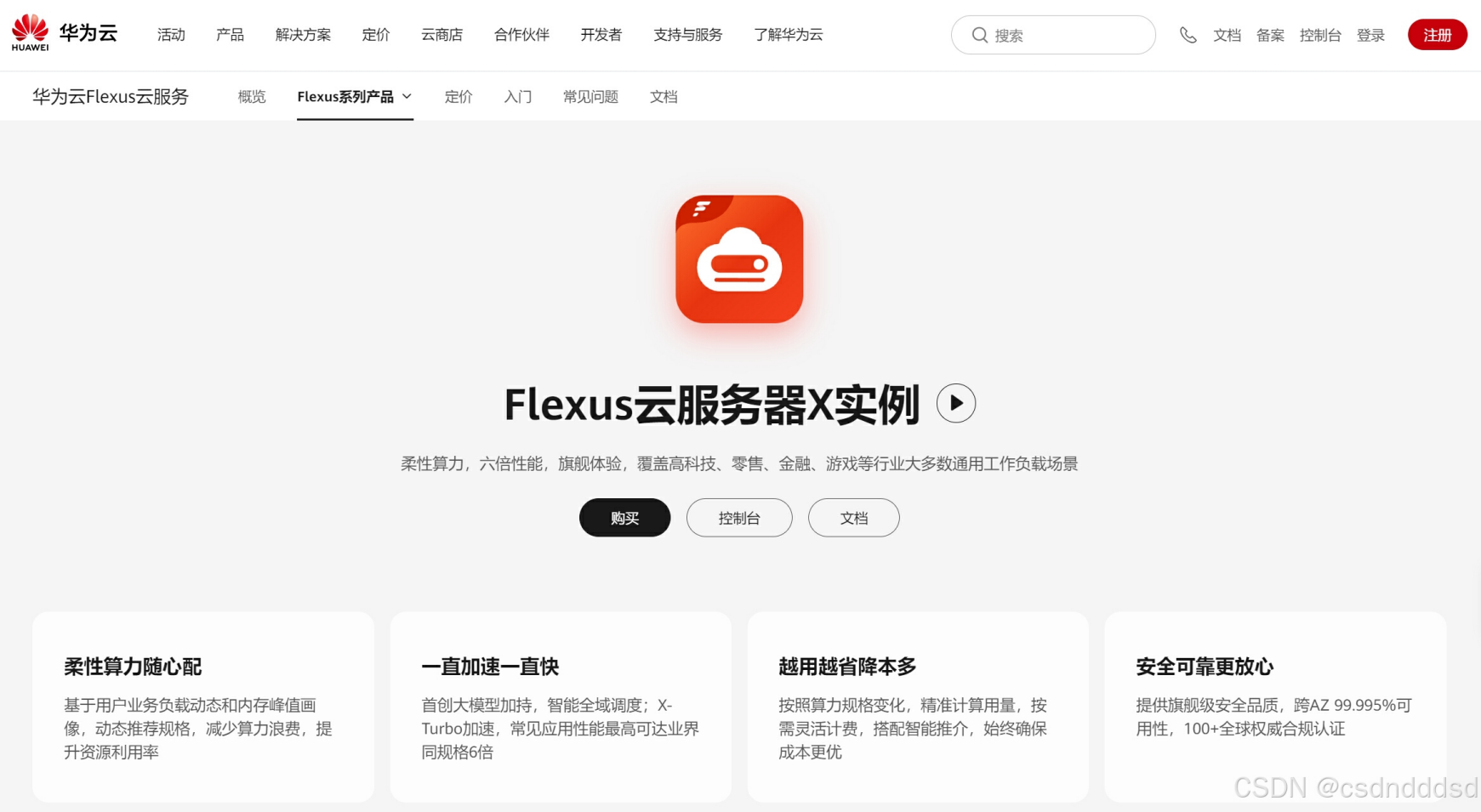 华为云 Flexus 云服务器 X 选购页面 https://www.huaweicloud.com/product/flexus-x.html