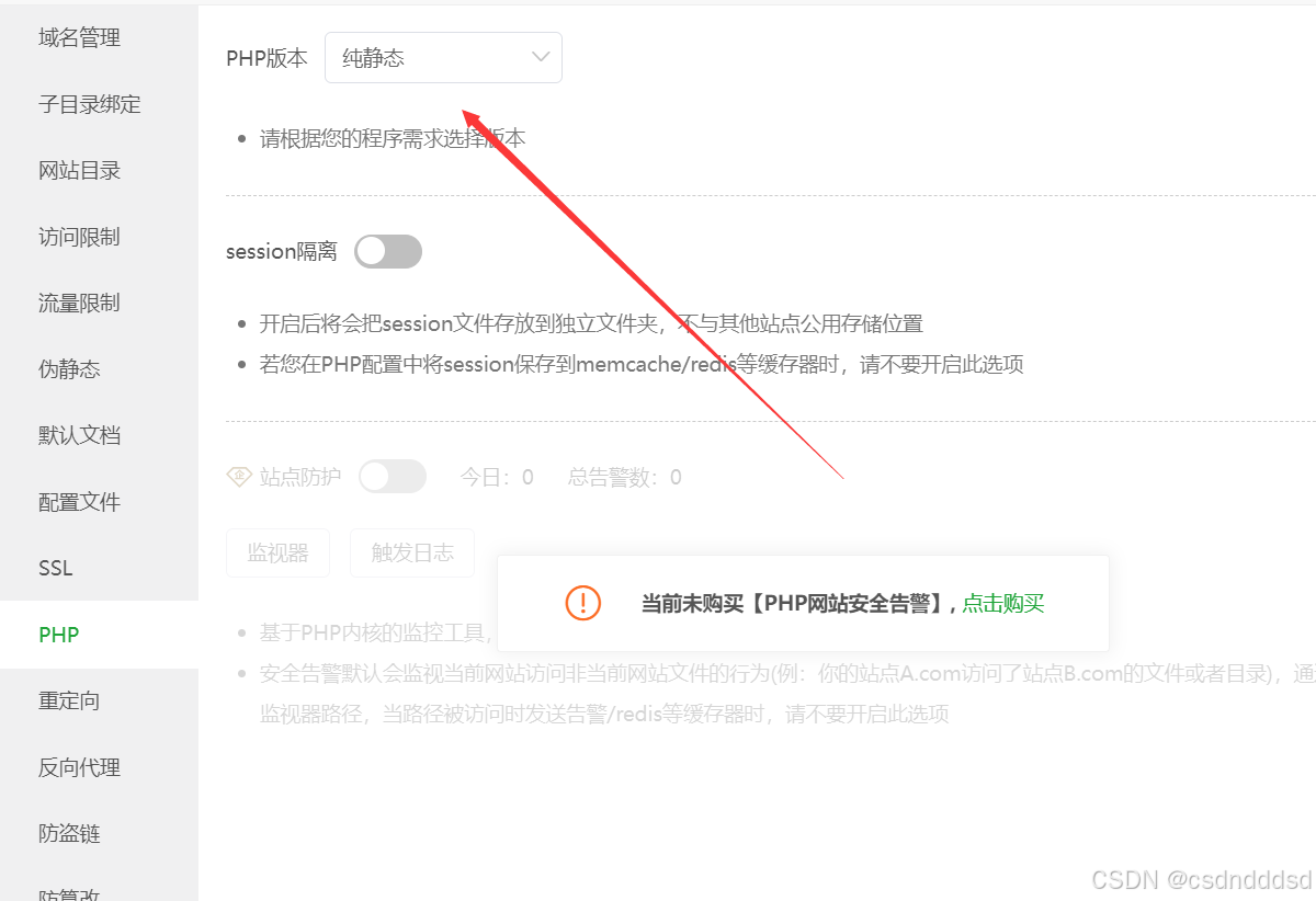 11、进入 PHP 版本,选择纯静态 ,切换。