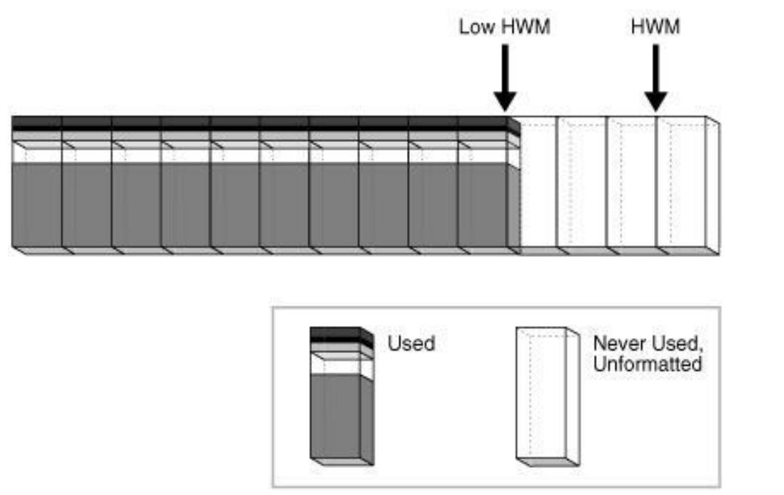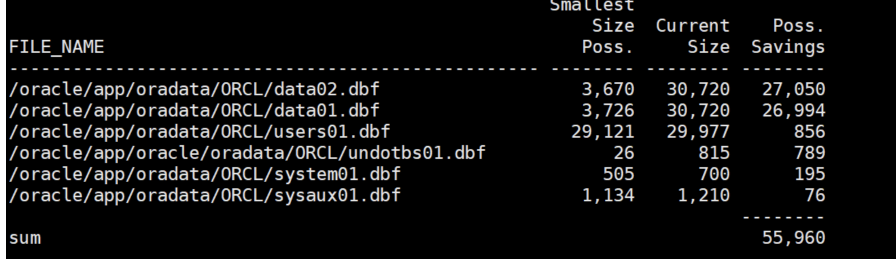 ceil( (nvl(hwm,1)*&&blksize)/1024/1024 ) smallest,