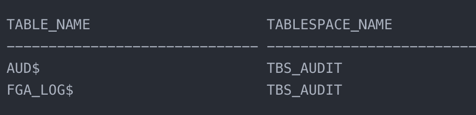 FROM dba_tables WHERE table_name IN ('AUD$', 'FGA_LOG$')