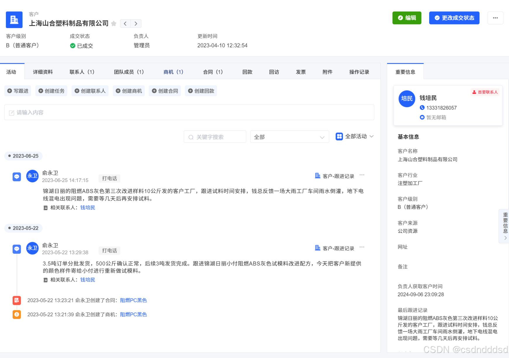 RecordActionLog(userInfo[′id′],′crmcustomer′,′delete′,v['name'], '', '', '删除了客户:' . $v['name']);