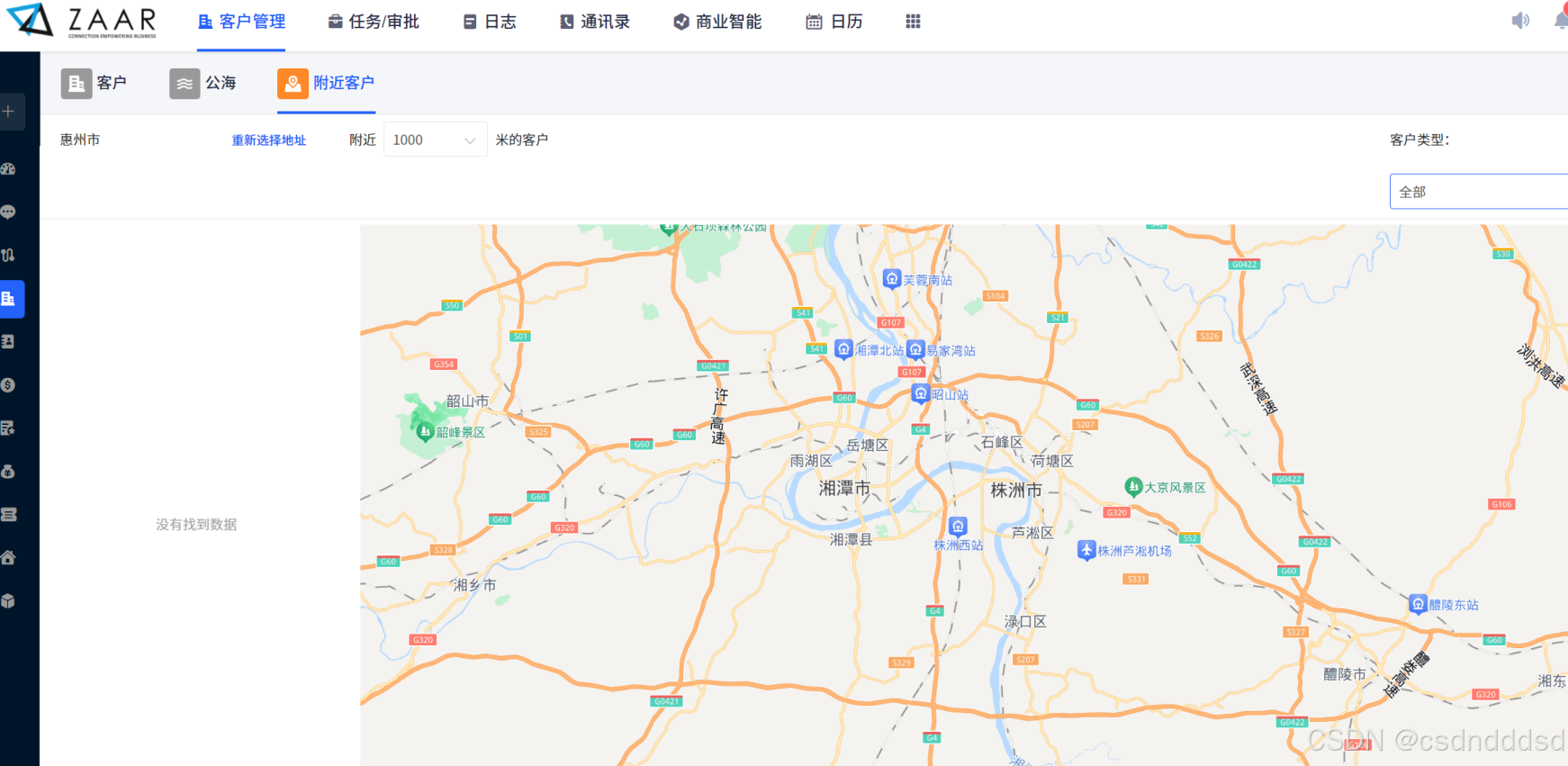 当配置好地图参数之后,就可以进行地区定位和使用附件客户等功能了