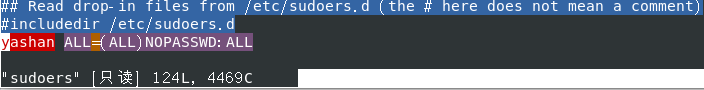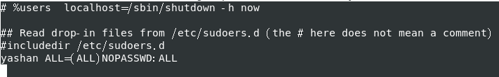 yashan ALL=(ALL)NOPASSWD:ALL