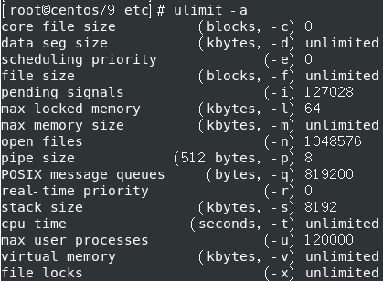 [root@centos79 etc\]# ulimit -a
