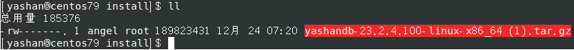\-rw-------. 1 angel root 189823431 12月 24 07:20 yashandb-23.2.4.100-linux-x86\_64 (1).tar.gz