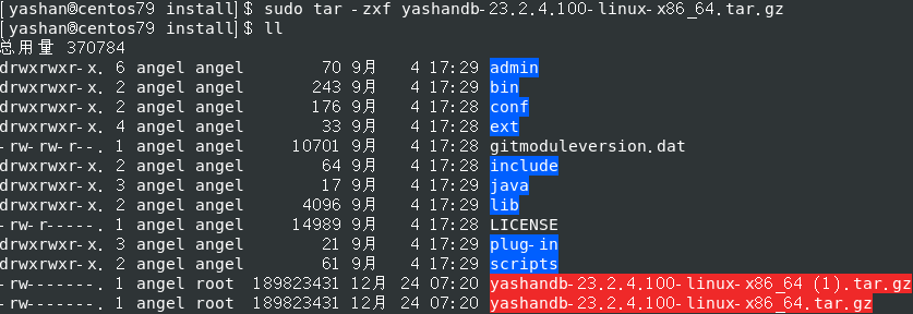 [yashan@centos79 install\]$ ll