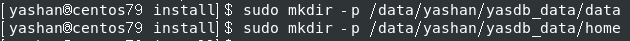 [yashan@centos79 install]$ sudo mkdir -p /data/yashan/yasdb_data/home