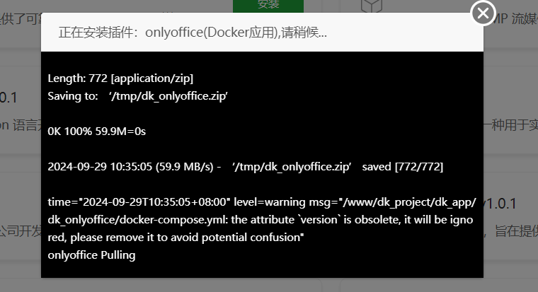 • 在宝塔面板中安装 Docker,通过 Docker 拉取 onlyoffice 的镜像