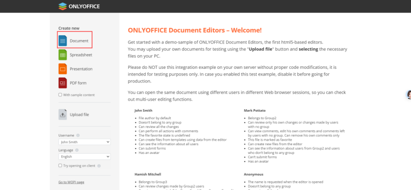 • 最后访问部署好的 onlyoffice 办公套件系统