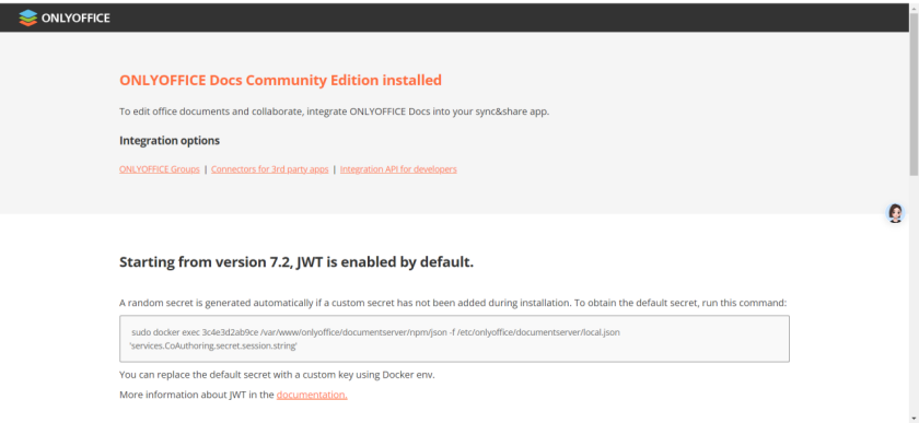 [root@flexusx-251f ~]# docker psCONTAINER ID IMAGE COMMAND CREATED STATUS PORTS NAMES3c4e3d2ab9ce onlyoffice/documentserver "/app/ds/run-documen…" 3 minutes ago Up 2 minutes 443/tcp, 0.0.0.0:18760->80/tcp, :::18760->80/tcp onlyoffice
