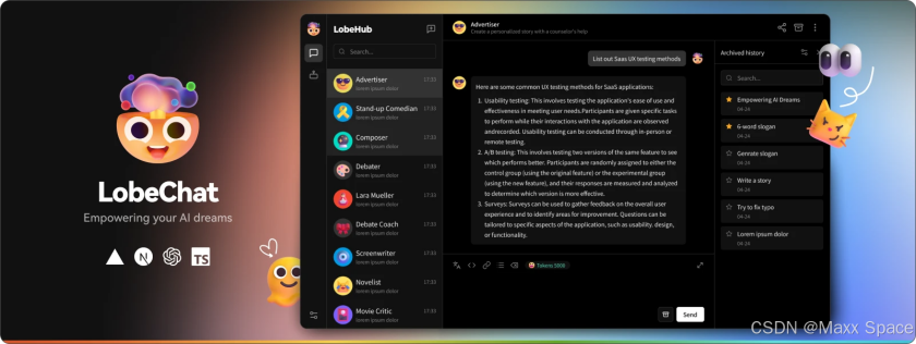LobeChat 是经过精心设计的界面,具有优雅的外观和流畅的交互效果,支持亮暗色主题,适配移动端。支持 PWA,提供更加接近原生应用的体验。流式响应带来流畅的对话体验,并且支持完整的 Markdown 渲染,包括代码高亮、LaTex 公式、Mermaid 流程图等。使用 我们的 Docker 镜像,只需点击一键部署按钮,即可在 1 分钟内完成部署,无需复杂的配置过程,很适合构建自己 AI 对话应用。