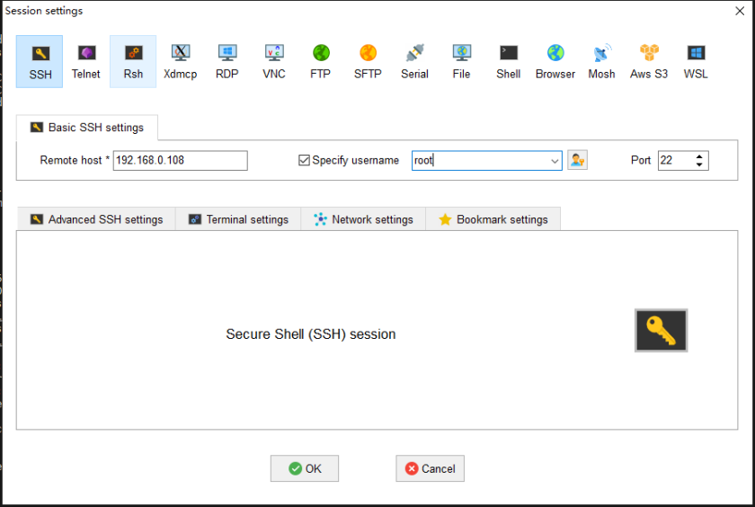 我个人习惯使用 MobaXterm 这款软件,添加 SSH 连接,输出公网 IP、用户名和端口(默认 22),连接即可。
