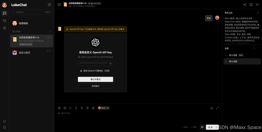 这里有很多优化好的针对专门需求的助手,当然需要添加 OpenAI API Key,这些助手都是基于 OpenAI 的模型输出的