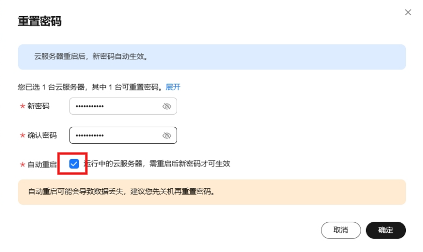 勾选自动重启,点击确定即可