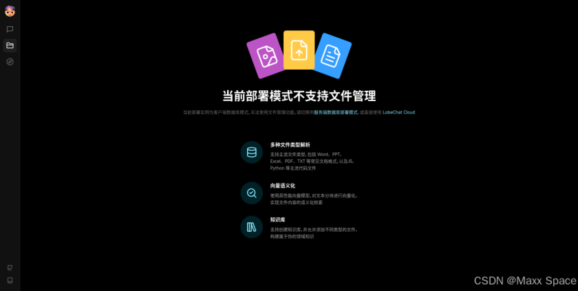 当前部署模式不支持文件管理,当前部署实例为客户端数据库模式,无法使用文件管理功能