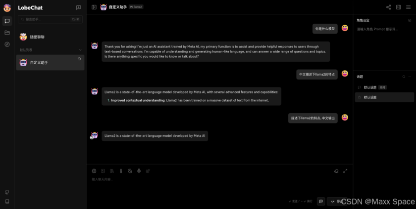 LobeChat 打开了对话助手的新世界,在不断优化自身和扩展功能的过程中,LobeChat 努力为用户带来更加智能、灵活、多样化的对话体验。LobeChat 是一个开源、可扩展(函数调用)、高性能的聊天机器人框架,它支持一键免费部署您的私人 ChatGPT/LLM Web 应用程序。作为集成大模型的聊天应用的使用就是这些了,配置模型、使用模型并开启对话,还有更多有趣的设置和功能就需要自行探索了。
