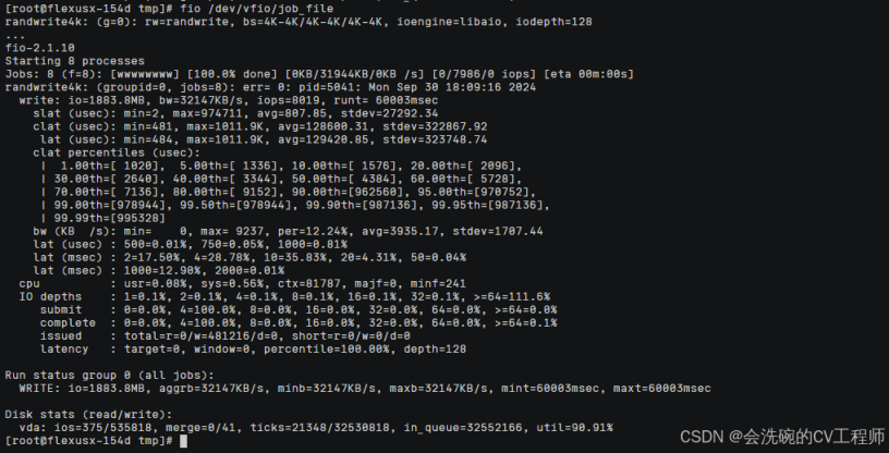 o 磁盘利用率:90.91%(表明磁盘在测试期间得到了充分的利用)