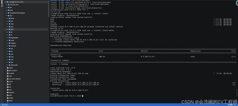 因为 fio 还需要 libaio 依赖,然后依次执行以下命令,安装 libaio: