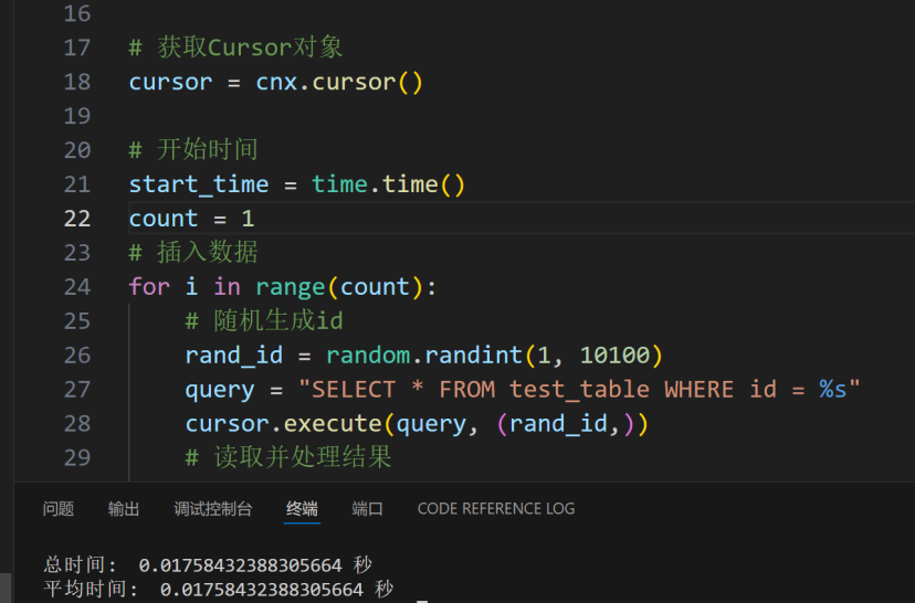 单条直接查询使用工具是 13 毫秒,我们使用代码再测试一下。