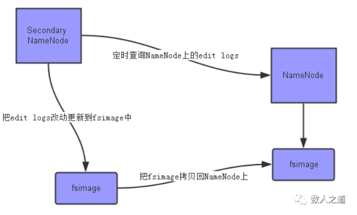 2NN是辅助节点,用于同步元数据信息,辅助NN对fsimage和edit log进行合并(冷备份),以解决edit log过大及丢失改动信息的问题。