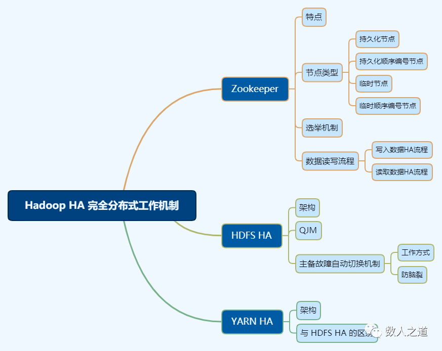 HDFS HA 由独立中间件的数据集群来维护;YARN HA 的资源分配及 JOB 运行调度信息维护在 Zookeeper 中。