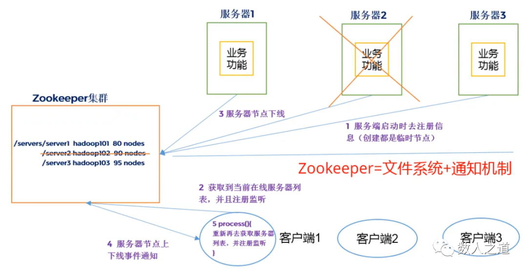 Hadoop 集群中有两个 NameNode 服务,两个 NN 都会定时给 Zookeeper 发送心跳,告诉 Zookeeper 我还活着,可以提供服务,某一个时间只有一个 NN 是Active 状态,另外一个则是Standby 状态;一旦 Zookeeper 检测不到 Active NN 发送的心跳,就会切换到 Standby 状态的 NN 上,将其设置为 Active 状态。所以集群中总有一个可用的 NN,达到 NN 高可用目的。